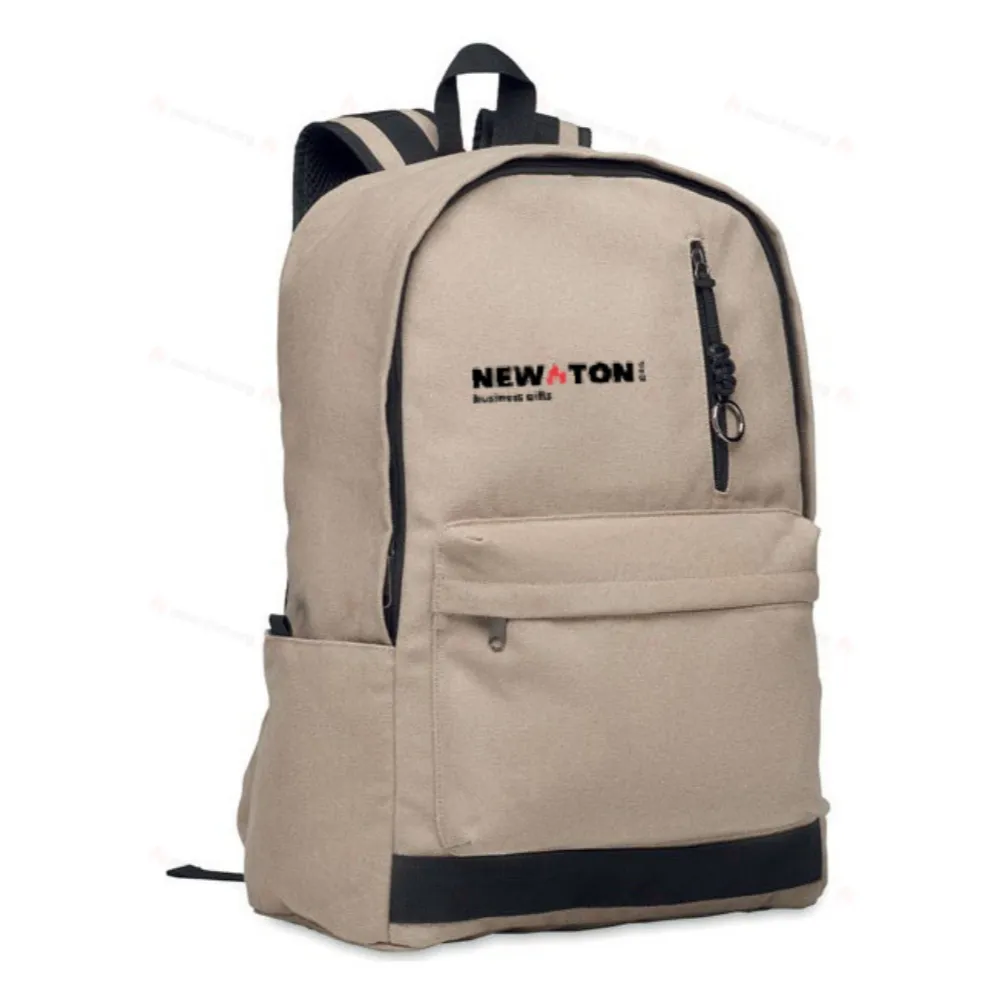 Рюкзак для 15-дюймового ноутбука из переработанного хлопка. Большой передний карман на молнии с внутренним отделением для ноутбука. Маленький передний карман на молнии. Два боковых накладных кармана. Спинка и плечевые ремни, задняя панель и дно с мягкой подкладкой. 450 гр/м².