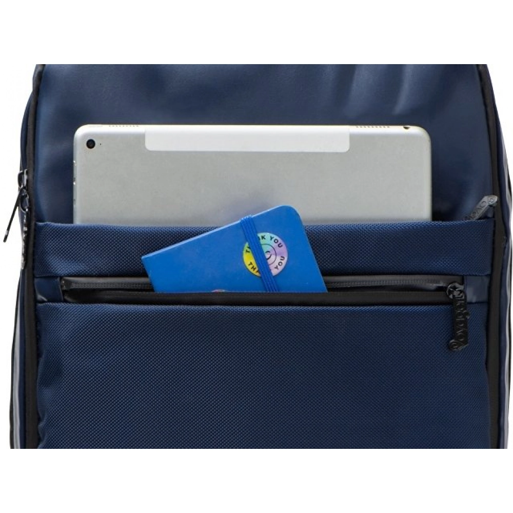 Удобный бизнес-рюкзак для передвижения по городу и деловых поездок состоит из отделения для ноутбука и планшета, большого отделения для одежды с фиксирующими ремнями, 2х наружных карманов на молнии спереди. Конструкция рюкзака продумана до мелочей: внутри большого отделения расположен органайзер для гаджетов и проводов, на спинке есть ремень для крепления на ручку чемодана и регулирующиеся по длине лямки, на лямке - карман для карт или ключей. Водостойкий материал и молнии. В комплекте мешок из спанбонда для хранения и металлический шильд под ваш логотип.