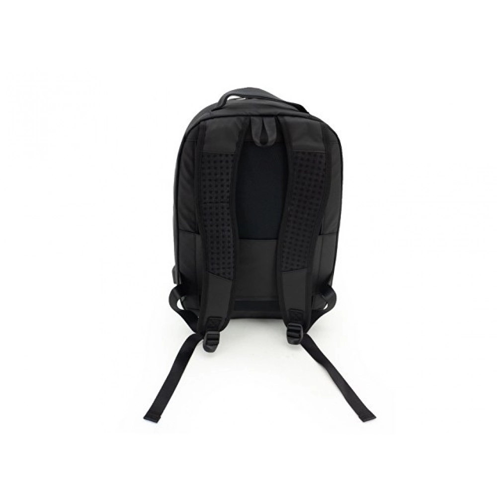 Рюкзак Eberhart Legacy для ноутбука – выбор стильного человека, который готов к экспериментам. Необычный дизайн аксессуара приковывает внимание. Рюкзак выполнен из черного полиэстера – прочного и надежного материала. Строгость формы и лаконичность оформления придает образу строгость. Размеры рюкзака позволяют с легкостью разместить ноутбук, документы и личные вещи. В качестве подкладки также используется полиэстер. Вся фурнитура подобрана в цвет рюкзака и потому модель действительно выглядит максимально сдержано. Для переноски предусмотрена ручка, два плечевые уплотненных ремня, регулирующихся по длине, и небольшая ручка для подвески рюкзака. Предусмотрено одно большое отделение с отсеком для хранения ноутбука и USB-портом для подзарядки и небольшим карманом на молнии. Спинка рюкзака не ортопедическая, но прекрасно держит форму, благодаря уплотненному основанию.