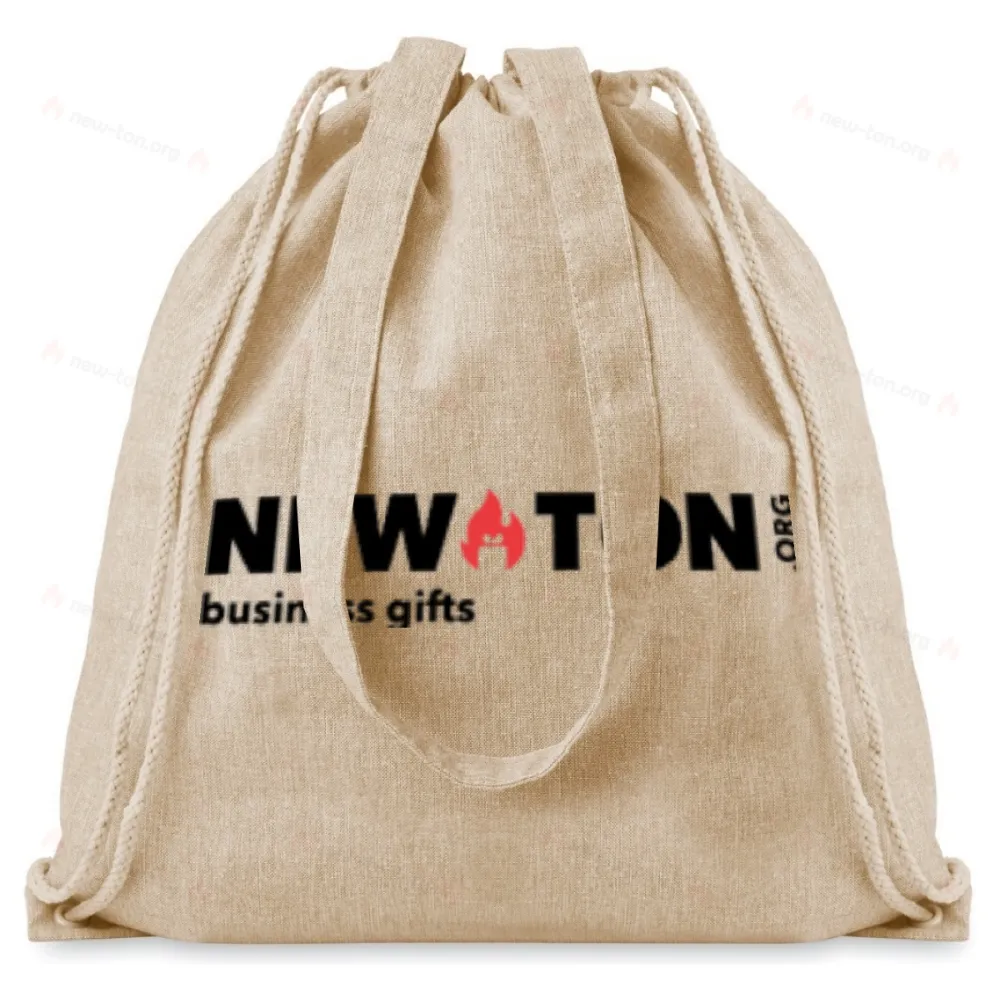 Рюкзак на шнурках и сумка шоппер с длинными ручками. Смесь переработанного коттона и переработанного полиэстера Прим 140 г/м². Этот пункт может уменьшиться после впечатывания.