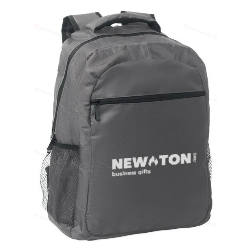 Рюкзак для ноутбука 15 дюймов из переработанного полиэстера 600D RPET с мягким отделением для ноутбука внутри, сетчатыми карманами по обеим сторонам и передним карманом на молнии.