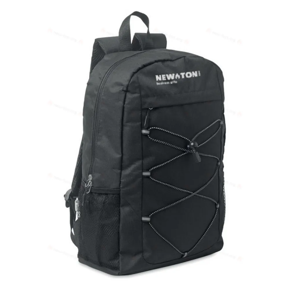 Рюкзак из переработанного полиэстера 600D RPET со шнуровкой и передним карманом на молнии. Сетчатые карманы с обеих сторон.