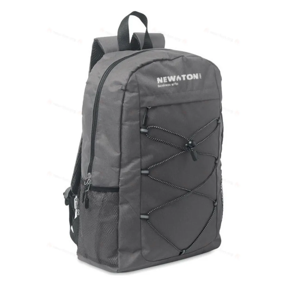 Рюкзак из переработанного полиэстера 600D RPET со шнуровкой и передним карманом на молнии. Сетчатые карманы с обеих сторон.