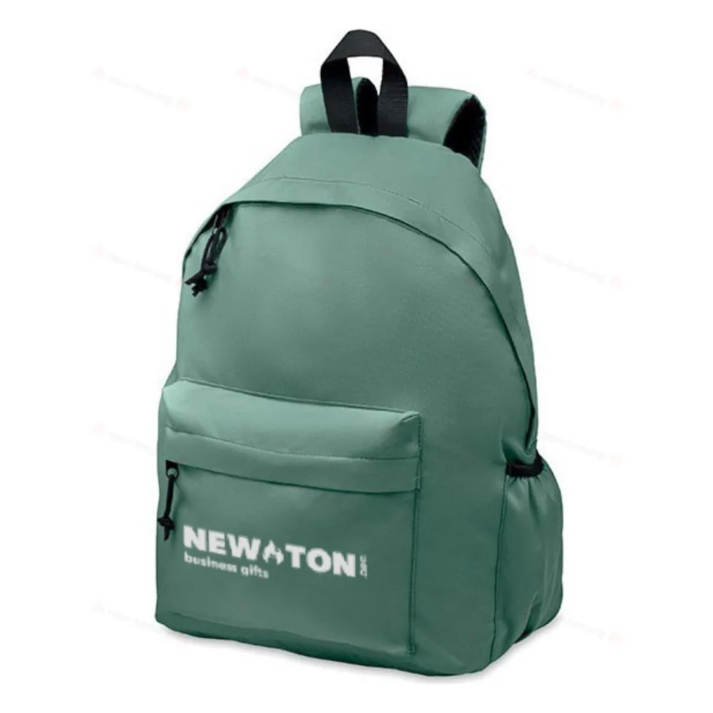 Рюкзак из полиэстера 600D RPET с внешним карманом на молнии. Спинка с мягкой подкладкой и боковое отделение для бутылки.