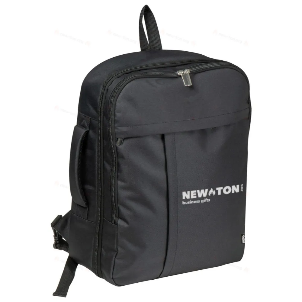 Рюкзак CrisMa для путешествий, изготовленный из переработанного полиэтилентерефталата (RPET), с отделением для ноутбука и большим передним карманом. Благодаря круговой молнии его можно упаковывать как чемодан. Мягкие плечевые ремни можно убрать в карман на молнии, и сумку можно использовать как обычную сумку благодаря боковой ручке. Мы нанесем ваш логотип на переднюю часть.
