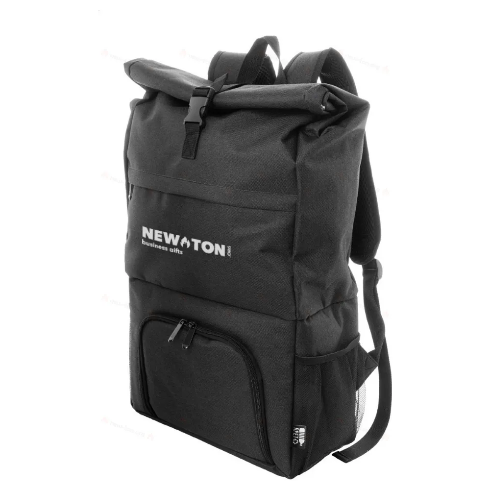 Рюкзак-охладитель Rolltop RPET с застежкой-молнией и подкладкой из PEVA для хранения ланч-бокса. Основное отделение закрывается на пряжку, также есть передний карман на молнии, боковые сетчатые карманы и подкладные лямки. Изготовлен из 600D RPET полиэстера с характерным ярлыком RPET.