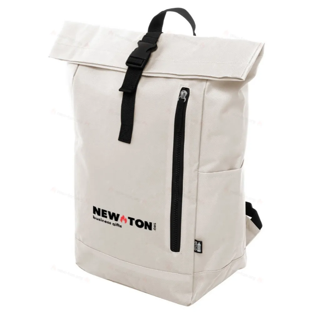 Рюкзак с застежкой на пряжке, отделением для ноутбука (14 дюймов) и карманом на молнии. С мягкой спинкой и плечевыми ремнями. Изготовлен из 600D RPET полиэстера с характерным ярлыком RPET.