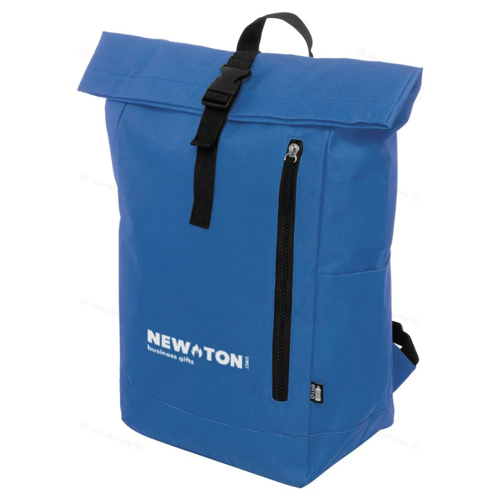 Рюкзак с застежкой на пряжке, отделением для ноутбука (14 дюймов) и карманом на молнии. С мягкой спинкой и плечевыми ремнями. Изготовлен из 600D RPET полиэстера с характерным ярлыком RPET.