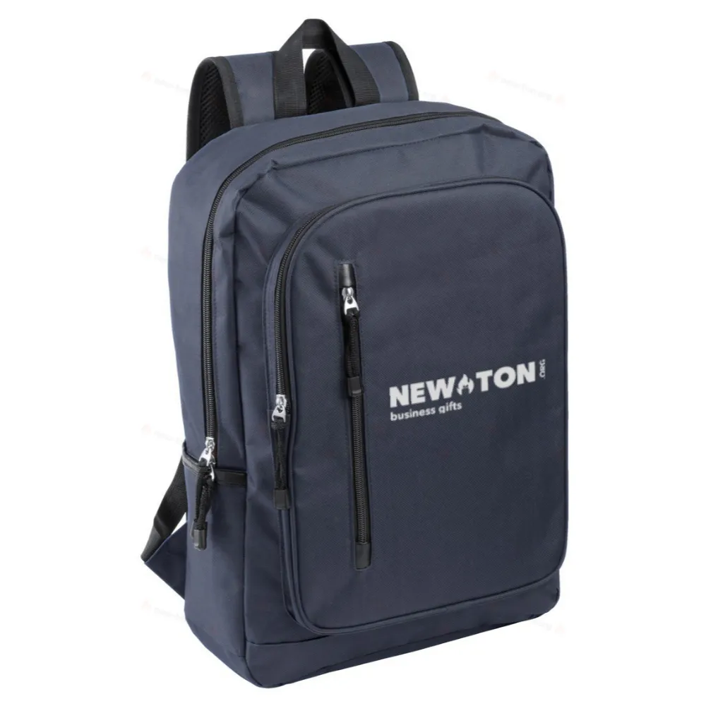 Рюкзак с застежкой на молнии основного отделения, 2 передних кармана на молнии, боковые карманы и отделение для ноутбука (15") с подкладкой. С мягкой спинкой и плечевыми ремнями. Полиэстер RPET 600D, с характерным ярлыком RPET.