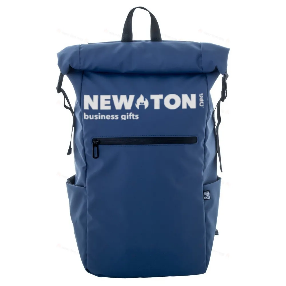 Водонепроницаемый рюкзак с закрытием на пряжку и липучку, изготовленный из RPET, с отделением для ноутбука (16") и планшета (10"), передним карманом на молнии, боковыми карманами, подкладкой на спине и плечевыми ремнями. Полиэстер RPET с покрытием PU 600D, с характерной этикеткой RPET.