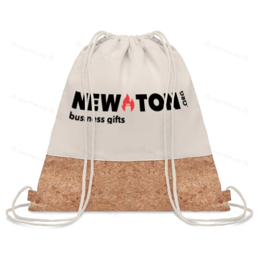 Рюкзак на шнурках из хлопка с пробковыми вставками. Длинные ручки. 160 г / м².