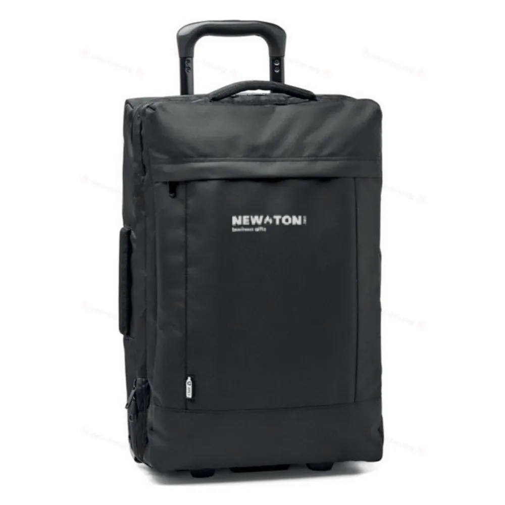 Чемодан из полиэстера 600D RPET. Два больших внутренних отделения на молнии. Один передний карман на молнии, боковая и верхняя ручки. Комбинированный замок и двойная рама. 2 колеса.