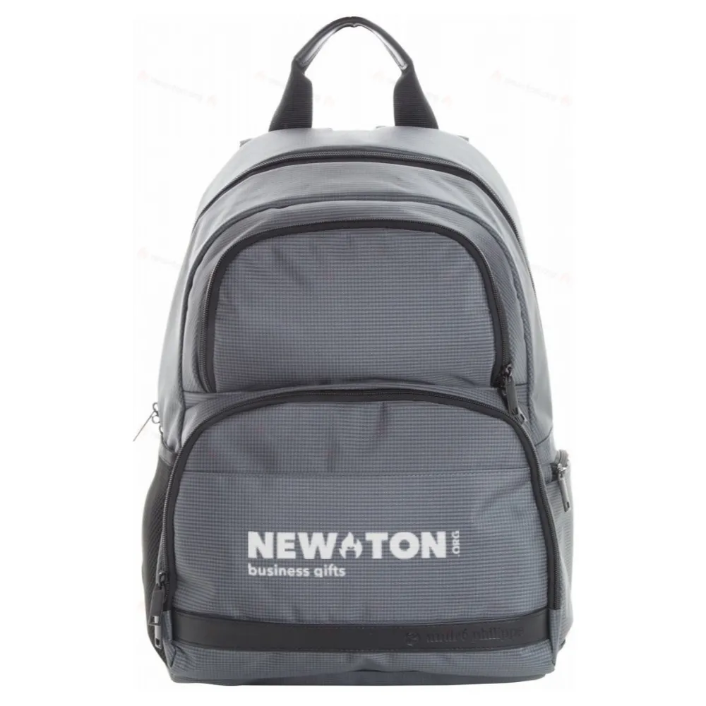 Рюкзак с несколькими карманами на молнии, отделением для ноутбука с мягкой подкладкой, мягкой спинкой и плечевыми ремнями. Изготовлен из двухслойного полиэстера 420D. Продукт бренда André Philippe.