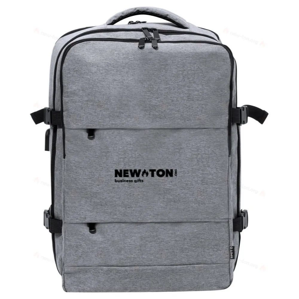 Водонепроницаемый рюкзак из RPET с передними и боковыми карманами, застежкой на молнии, отделениями для ноутбука (17 дюймов) и обуви, мягкой спинкой и плечевыми ремнями. Полиэстер RPET 300D с характерным ярлыком RPET.