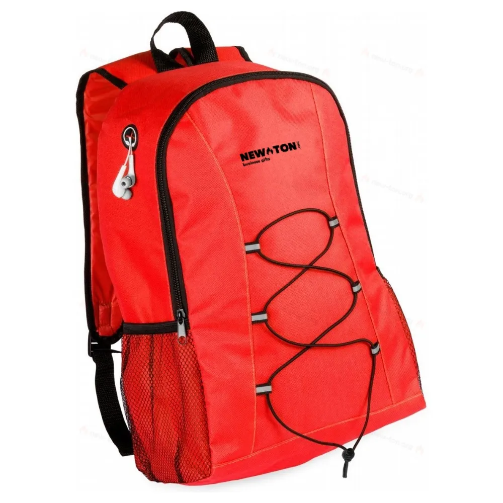 Рюкзак с регулируемыми плечевыми ремнями, выходом для наушников, сетчатыми боковыми карманами и застежкой на молнии в главном отделении. Полиэстер 600D.