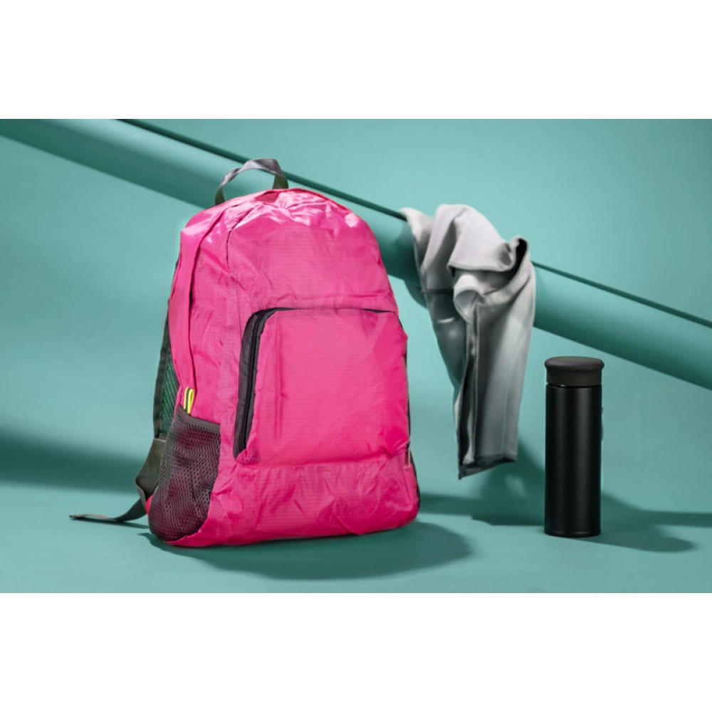 Функциональный рюкзак, который можно сложить до компактного размера. Имеет один внутренний карман и три внешних - один на молнии и два сетчатых. Рюкзак изготовлен из полиэстера.