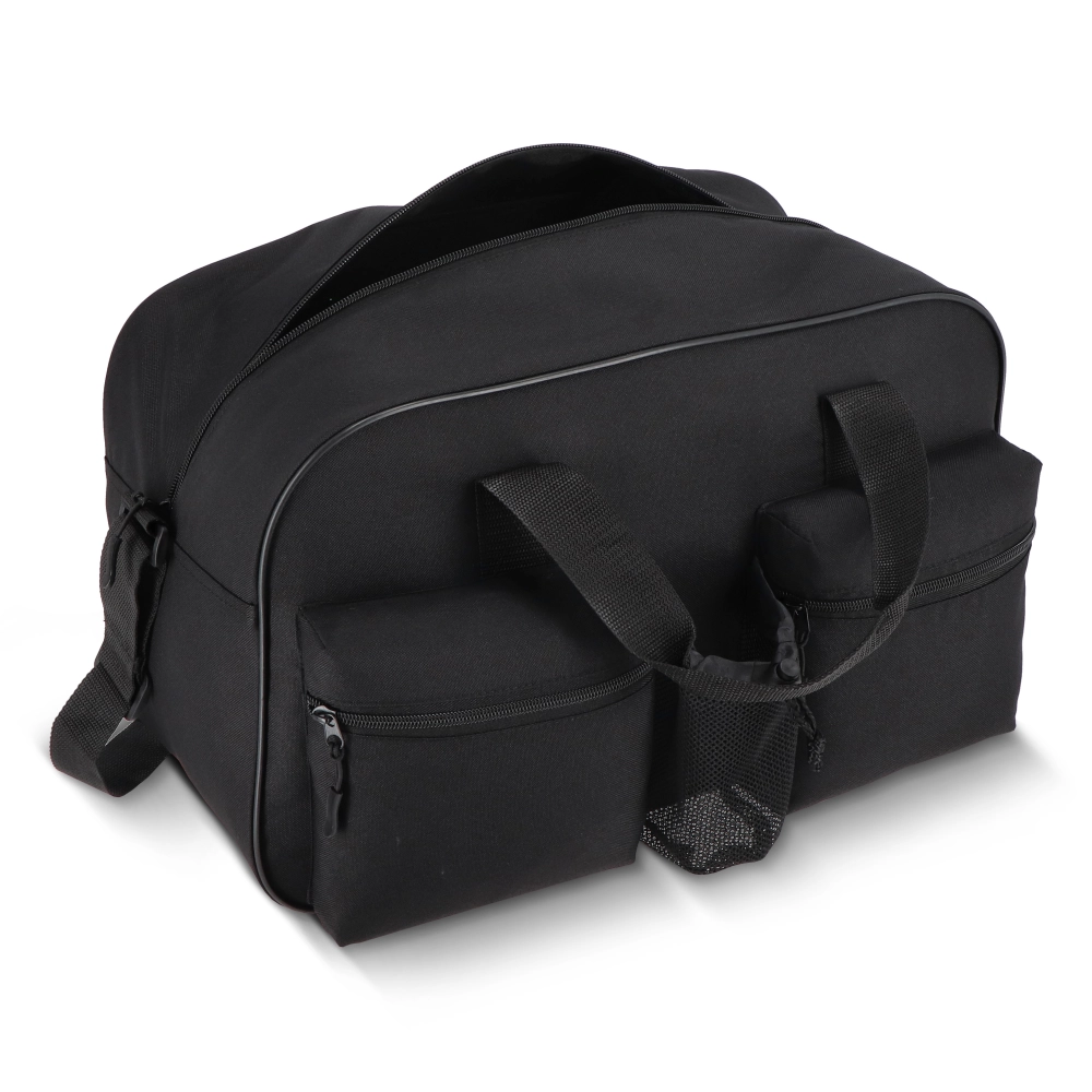 Прочная спортивная и дорожная сумка для домашних животных из переработанного материала 600D с ручкой-захватом, регулируемым плечевым ремнем, двумя передними отделениями на молнии для легкого доступа к предметам первой необходимости и сетчатым карманом для бутылочек. Идеальный компаньон для спортзала, готовый к тренировкам или приключениям в дороге.