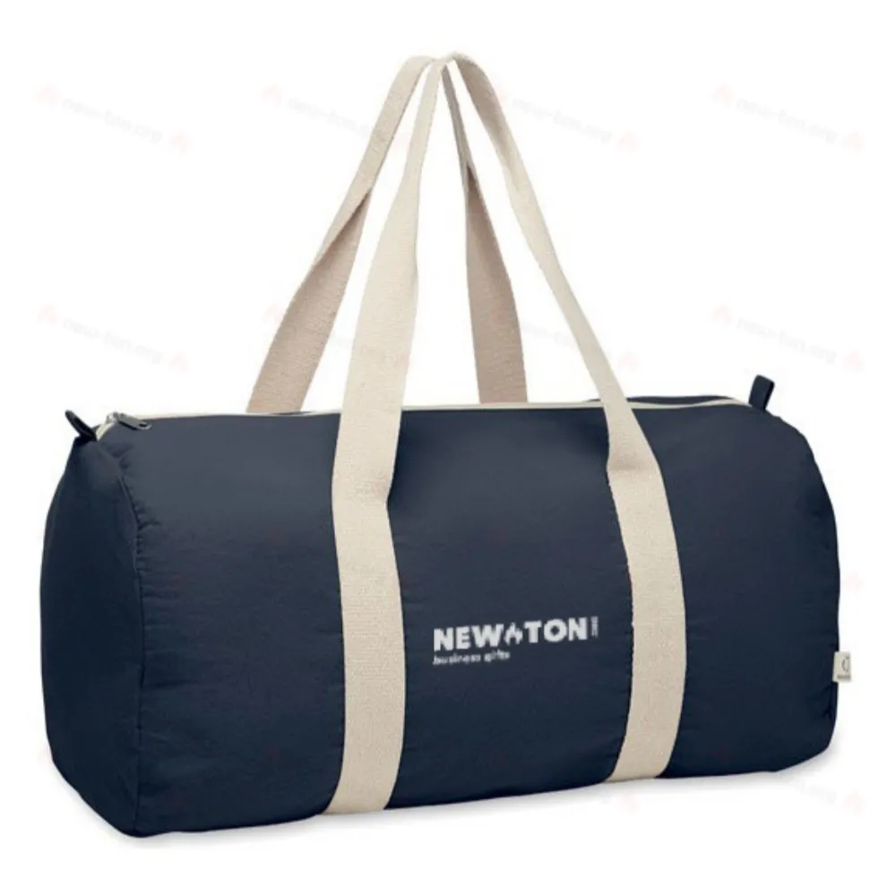 Спортивная или дорожная сумка на молнии с внутренним карманом на молнии из переработанного хлопка (80%) и переработанного полиэстера (20%) плотностью 320 гр/м², с длинными ручками.