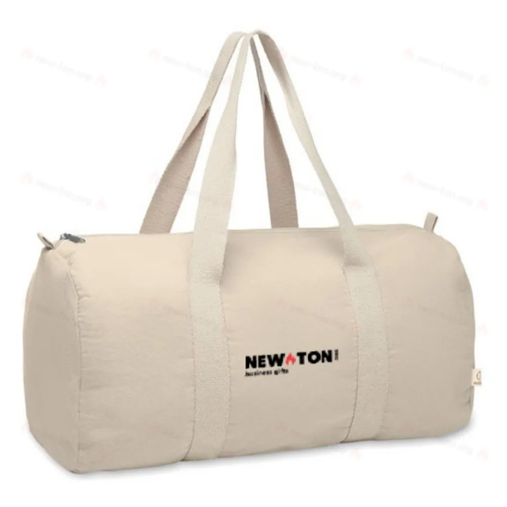 Спортивная или дорожная сумка на молнии с внутренним карманом на молнии из переработанного хлопка (80%) и переработанного полиэстера (20%) плотностью 320 гр/м², с длинными ручками.
