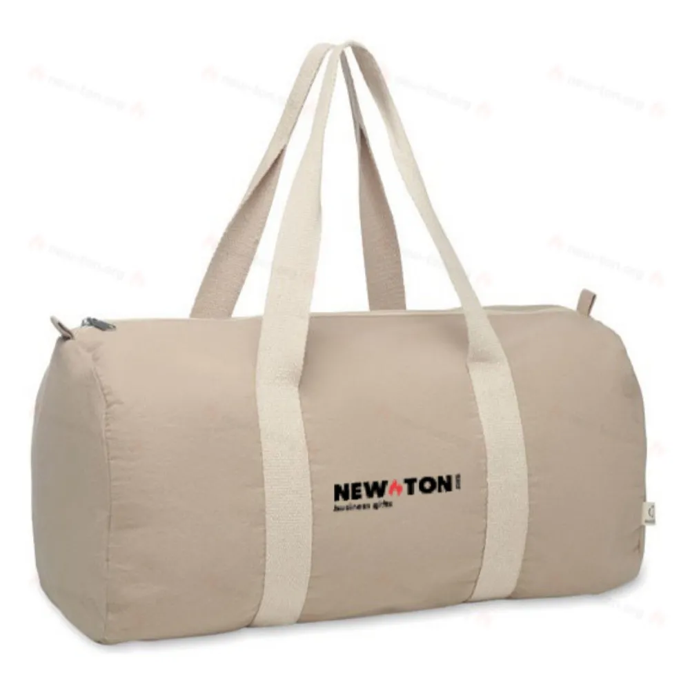 Спортивная или дорожная сумка на молнии с внутренним карманом на молнии из переработанного хлопка (80%) и переработанного полиэстера (20%) плотностью 320 гр/м², с длинными ручками.