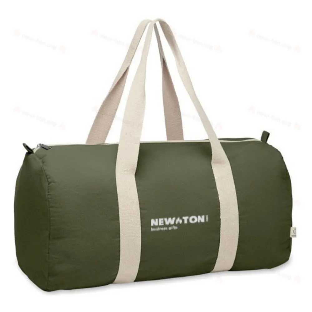 Спортивная или дорожная сумка на молнии с внутренним карманом на молнии из переработанного хлопка (80%) и переработанного полиэстера (20%) плотностью 320 гр/м², с длинными ручками.