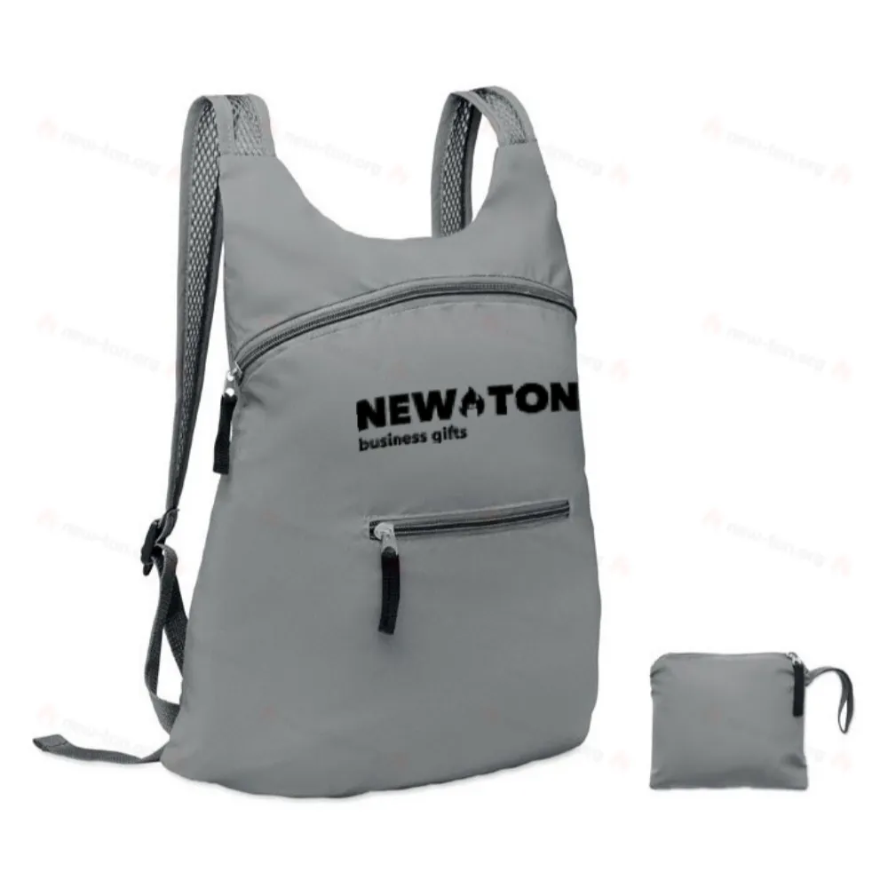 Складной спортивный рюкзак из светоотражающего полиэстера 190T с передним карманом на молнии. Регулируемые плечевые ремни.