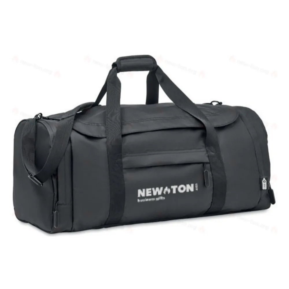 Большая спортивная или дорожная сумка из полиэстера 300D RPET. Основное отделение с боковым термо карманом на молнии. Съемная усиленная нижняя часть и регулируемый съемный плечевой ремень.