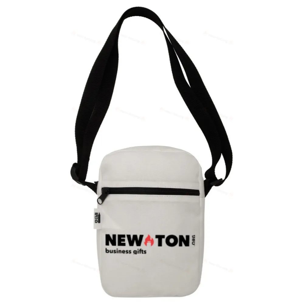 Изготовленная на заказ вертикальная сумка через плечо из полиэстера 600D RPET с отделением на молнии и передним карманом. С нанесенной сублимационной печатью графикой и отличительной этикеткой RPET. Минимальное количество: 50 шт.