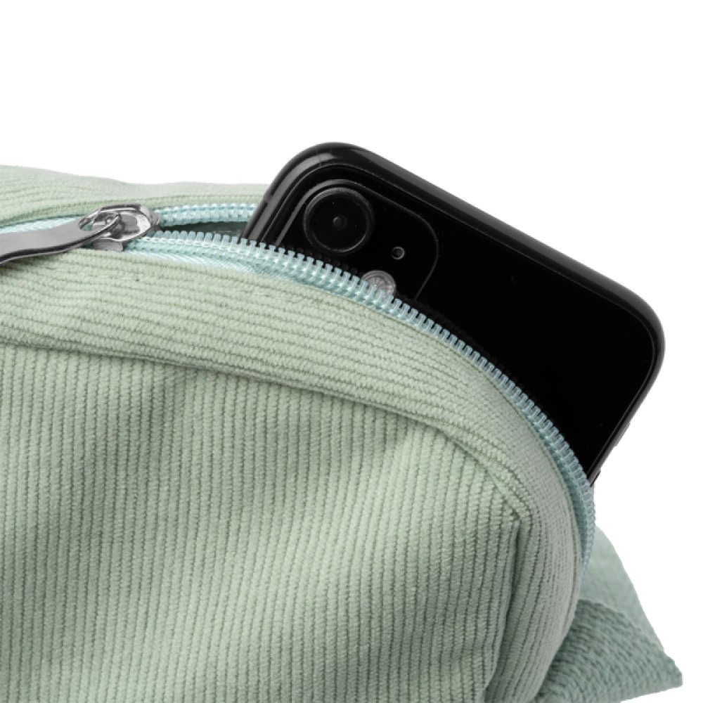Сумка через плечо из вельветовой ткани с молнией и регулируемым ремешком в тон.