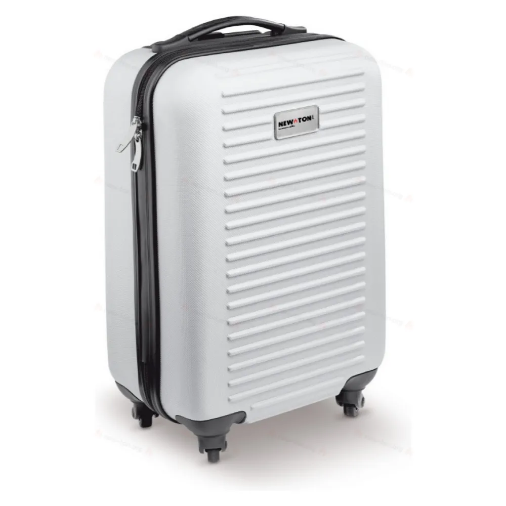 Чемодан размером с салон с одним основным отделением с серой подкладкой. Чемодан застегивается на двойную молнию и четыре вращающихся колеса. Металлическая пластина для печати. Индивидуально упакован в коробку.