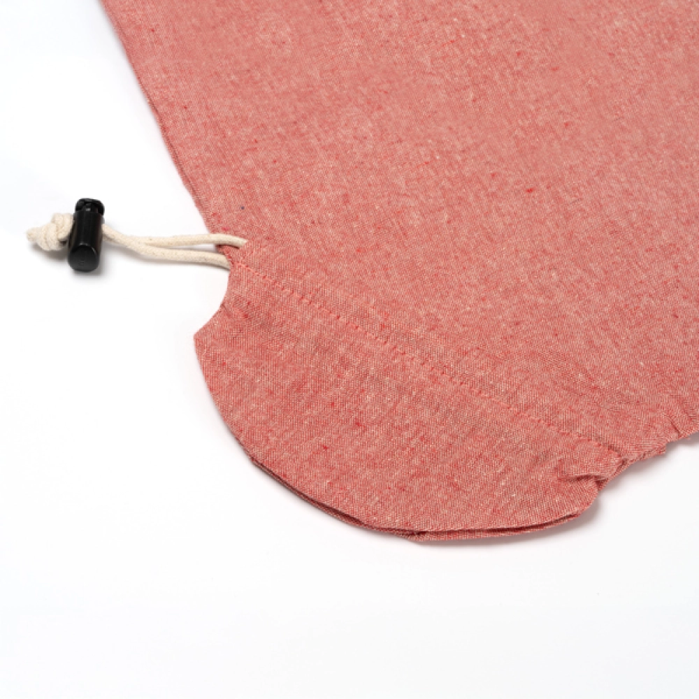 Сумка-рюкзак из переработанного хлопка плотностью 120 г/м², в цвете, с регулируемыми ремешками длиной 70 см и шнурком для складывания.