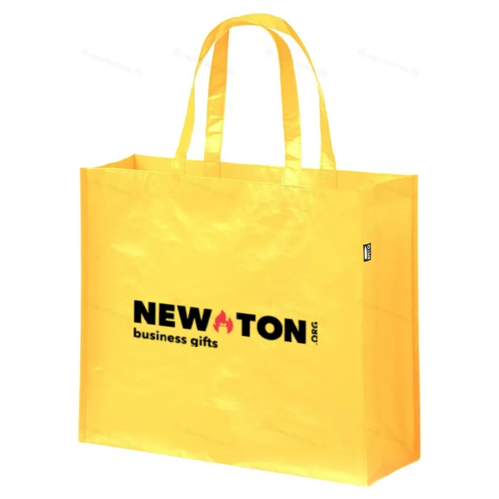 Ламинированная хозяйственная сумка RPET с ластовицей и средними ручками, полиэстер RPET 105 г/м2. С отличительной этикеткой RPET.