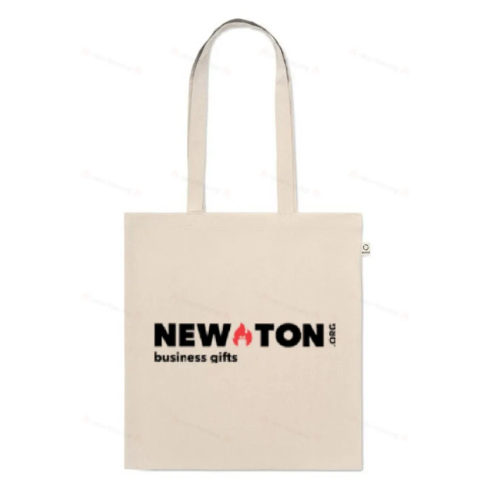 Сумка для покупок из переработанного хлопка (70%) и RPET(30%) с длинными ручками. 140 гр/м². Этот пункт может уменьшиться после впечатывания.