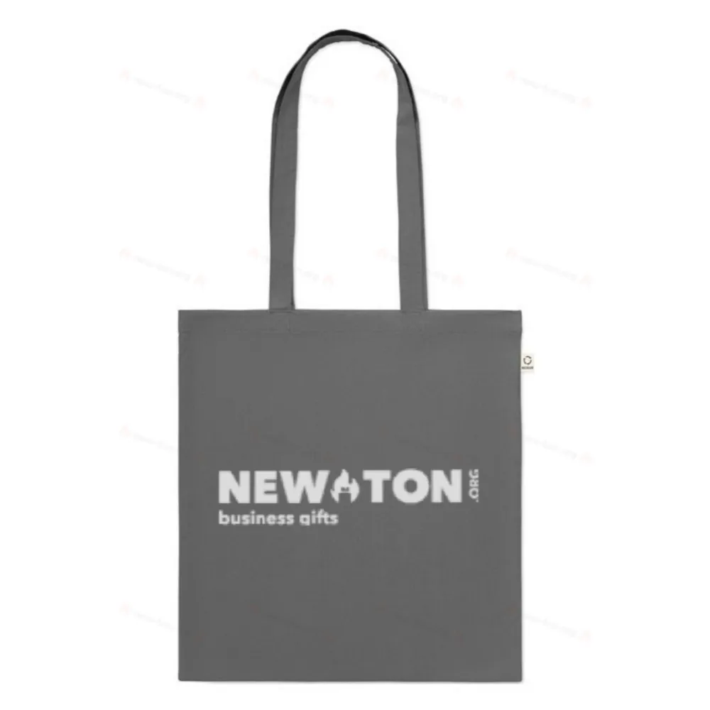 Сумка для покупок из переработанного хлопка (70%) и RPET(30%) с длинными ручками. 140 гр/м². Этот пункт может уменьшиться после впечатывания.