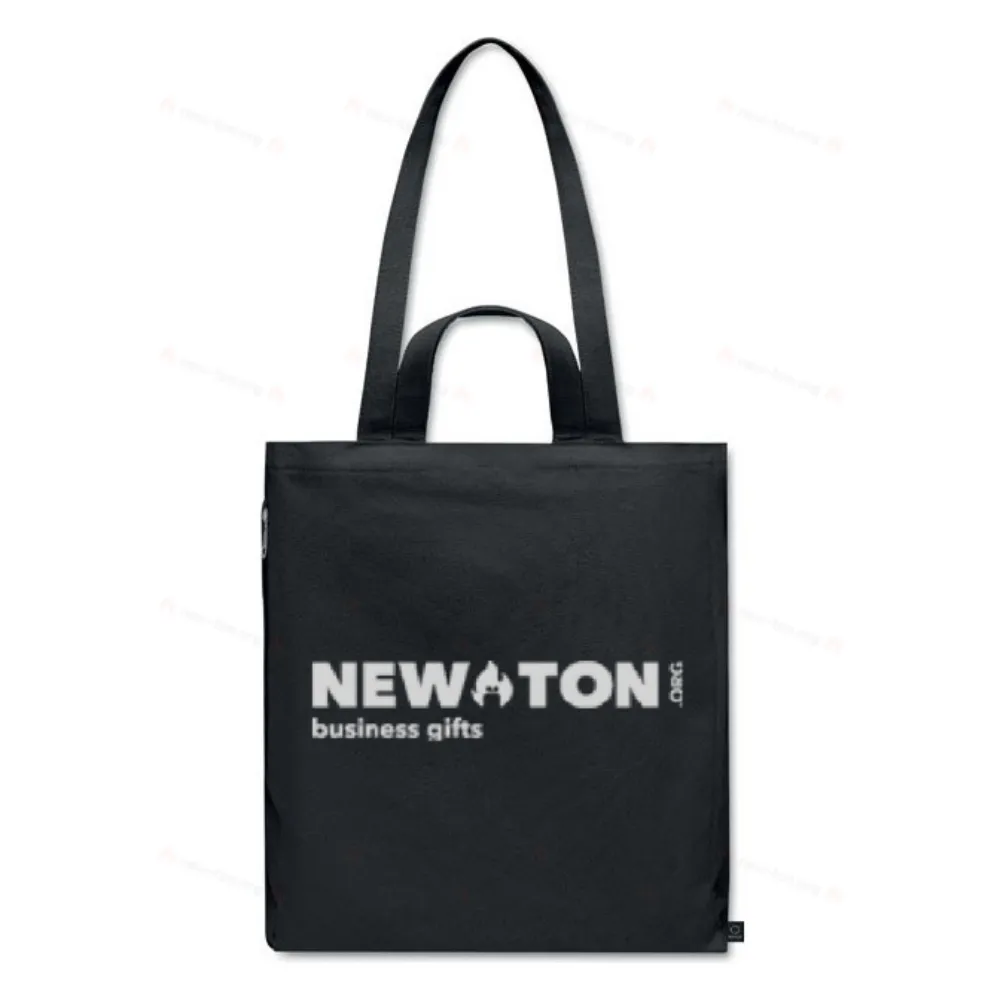 Сумка для пляжа или покупок из переработанного хлопка 70% и 30% переработанного полиэстера с короткими и длинными ручками. Имеет боковой карман на молнии. 380 гр/м².