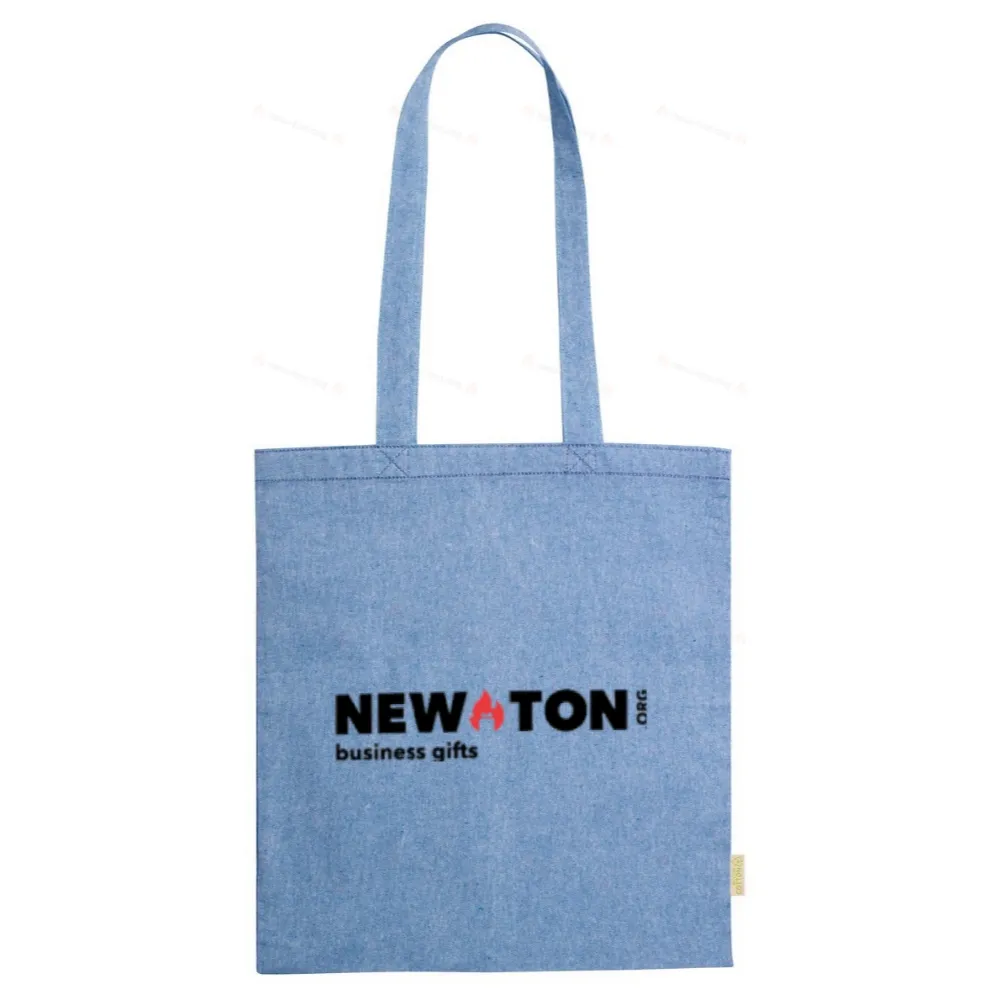 Многоразовая сумка для покупок из переработанного хлопка с длинными ручками. 100% переработанный хлопок плотностью 120 г / м².