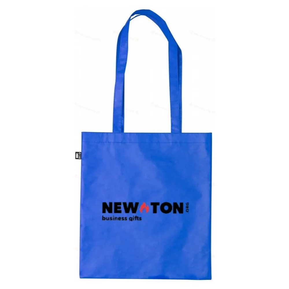 Ламинированная сумка для покупок из RPET с длинными ручками, полиэстер RPET 100 г/м². С отличительной этикеткой RPET.