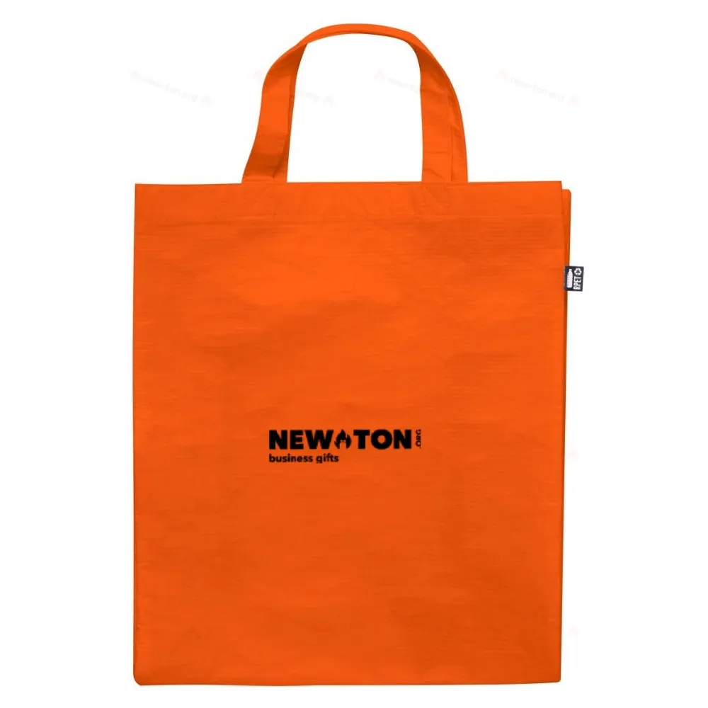 Ламинированная сумка для покупок из полиэстера RPET с клиньями и короткими ручками, 110 г/м². С отличительной этикеткой RPET.