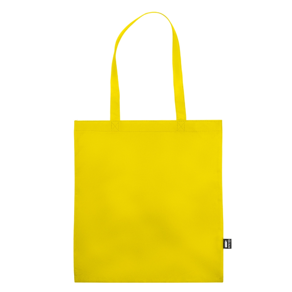 Сумка для покупок изготовлена из RPET, имеет длинные ручки для ношения сумки на плече, включает значок RPET на ярлыке, изделие изготовлено из нетканого RPET 75 г/м2.