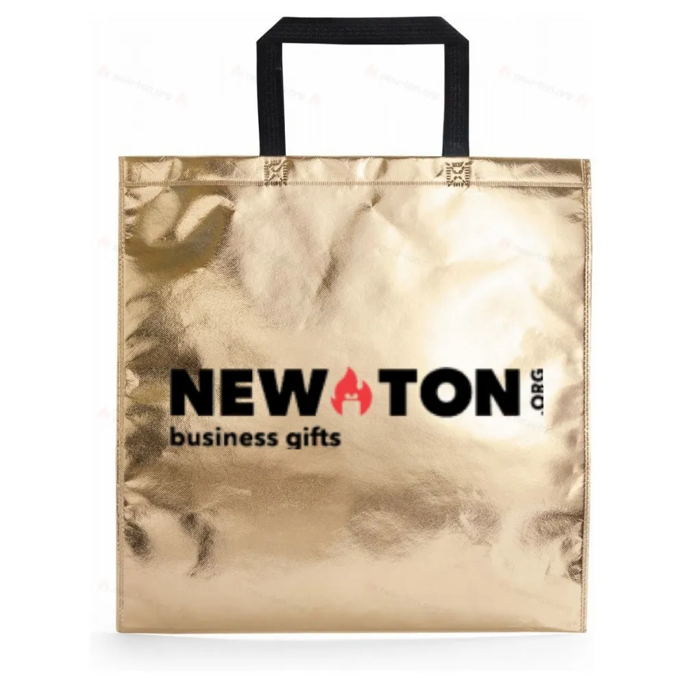 Сумка для покупок из ламинированного нетканого материала цвета металлик со средними ручками.