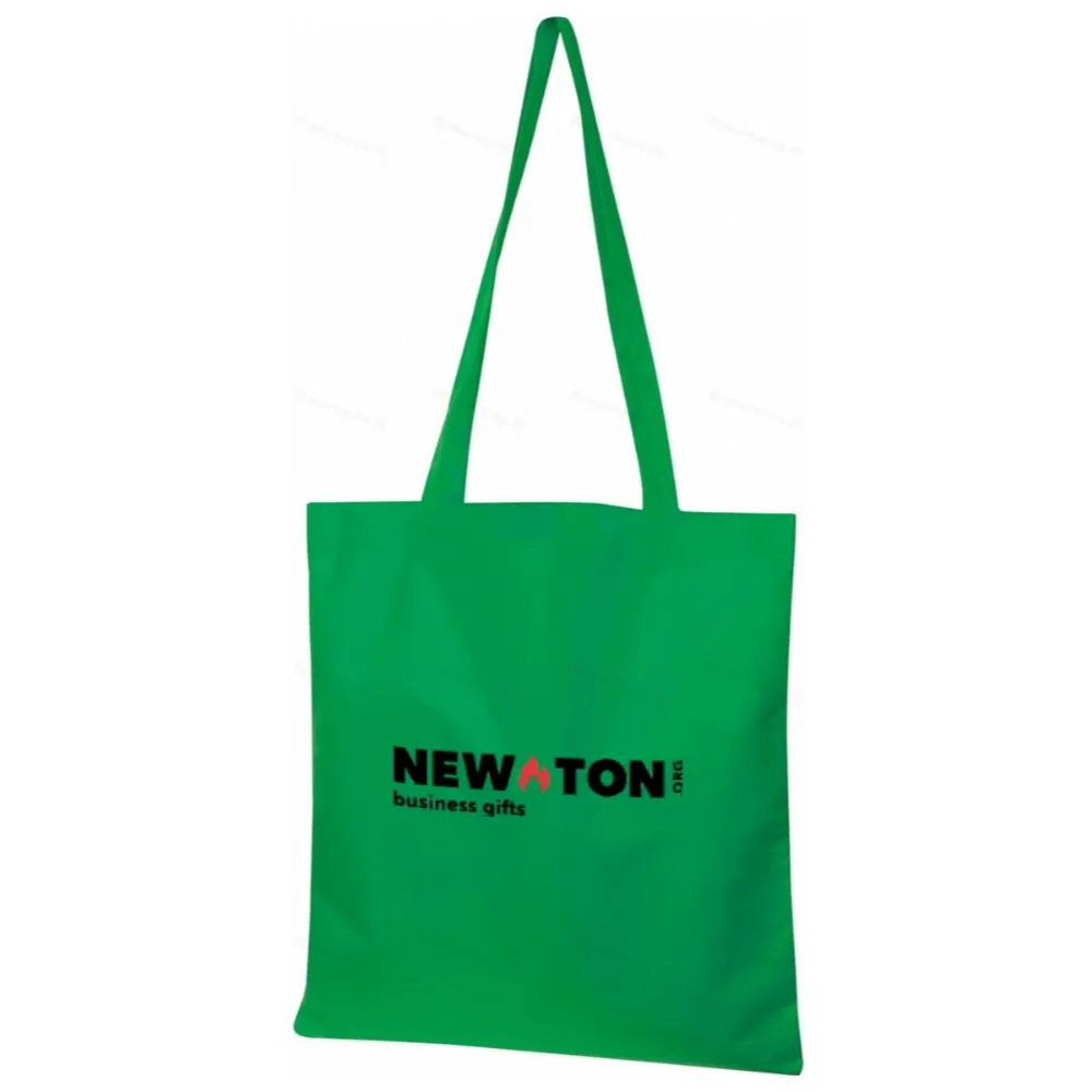 Большая нетканая сумка с длинными ручками и поперечным швом. Логотип размещается с одной стороны.