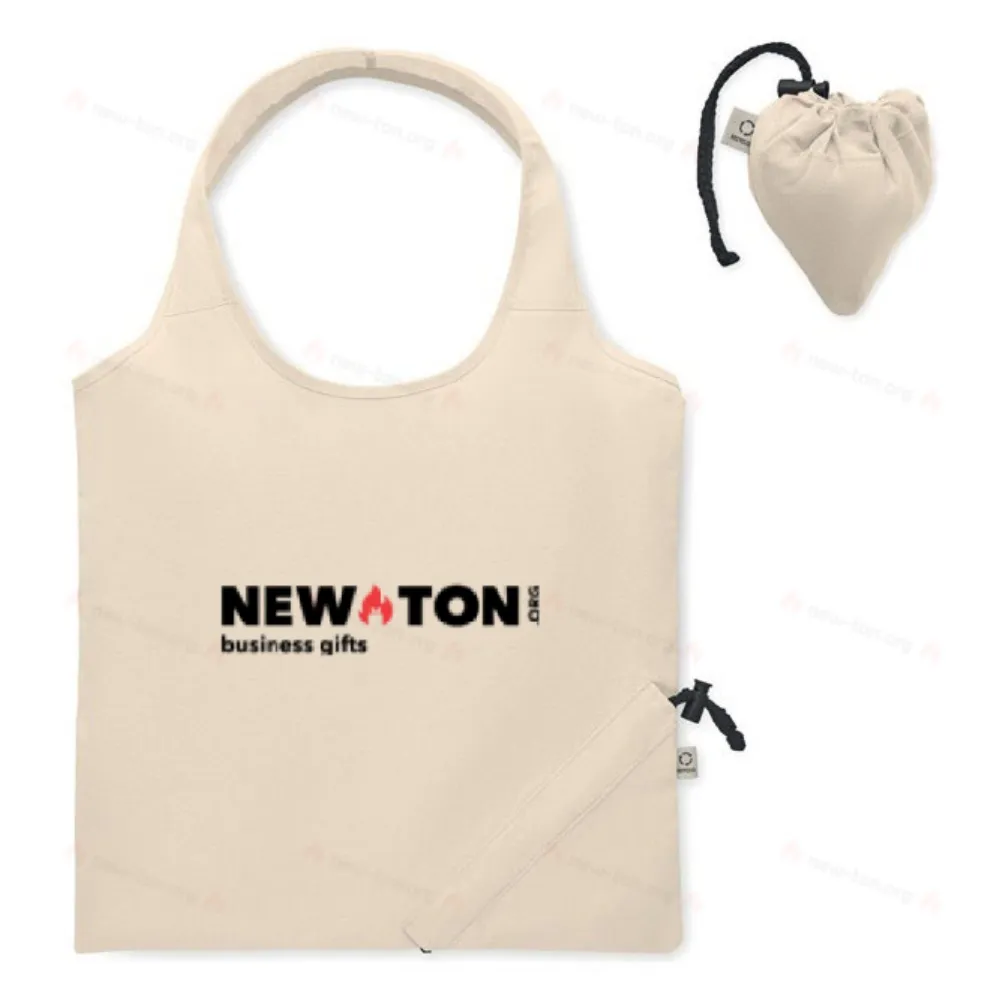 Складная сумка для покупок из 70% переработанного хлопка и 30% RPET. 140 гр/м². Этот товар может давать усадку после нанесения.