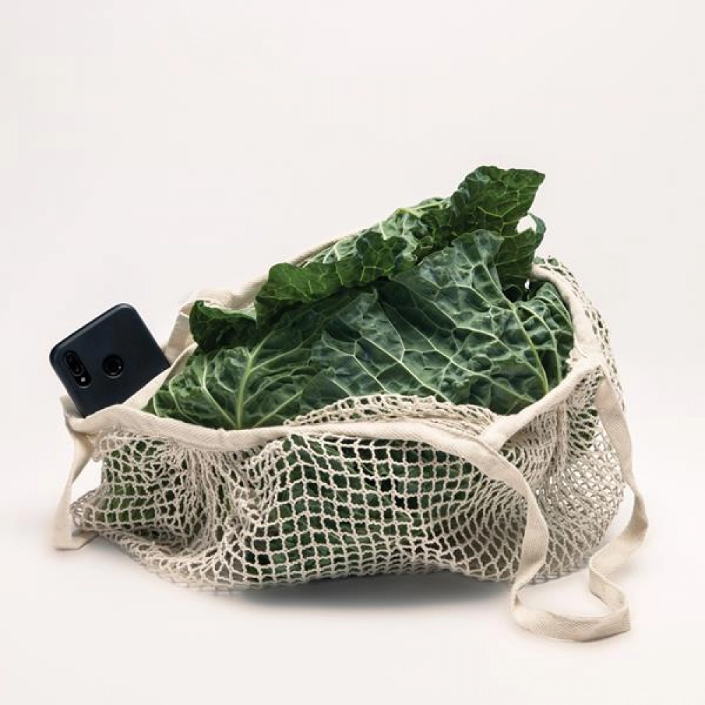 Складная сетчатая сумка из 100% хлопка с ручками.