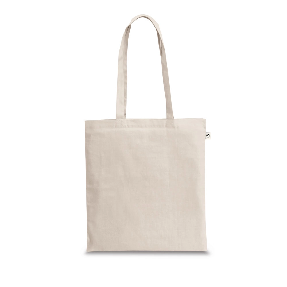 Сумка изготовлена из переработанного хлопка (70%) и полиэстера (30% rPET) (150 г/м2), с ручками длиной 65 см. Переработанный хлопок однотонный и неокрашенный. Сырье используется в своем первоначальном виде и цвете, без использования красителей или отбеливающих химикатов, что снижает ударопрочность. Однотонный цвет получается за счет выбора переработанной пряжи того же оттенка, но могут присутствовать примеси и цветовые вариации. 380 x 420 мм