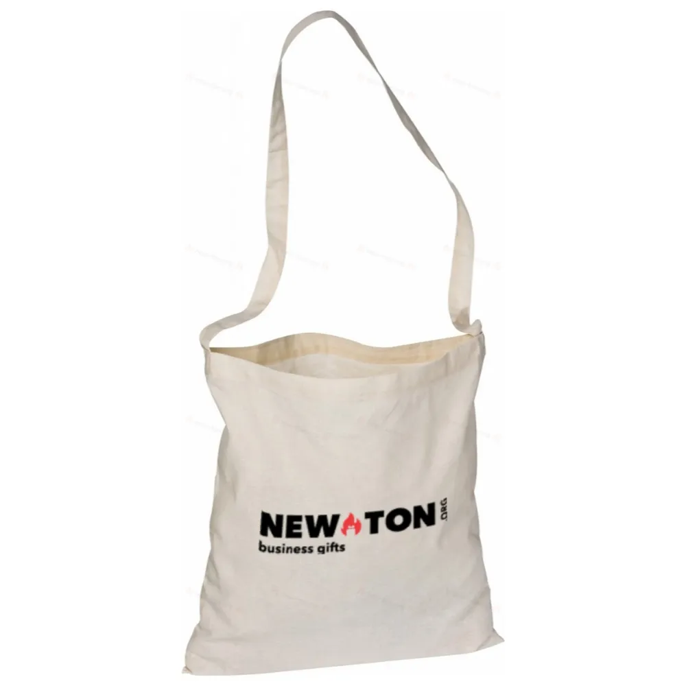 Хлопчатобумажная сумка натурального цвета с одном длинным ухом. Вес: 140 г/м2.