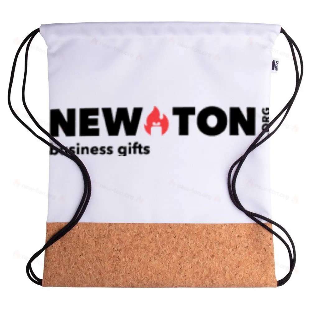 Изготовленная на заказ сумка на шнурке из полиэстера 600D RPET и натуральной пробки. С сублимационной печатной графикой и отличительной этикеткой RPET. Минимальный заказ: 50 шт.