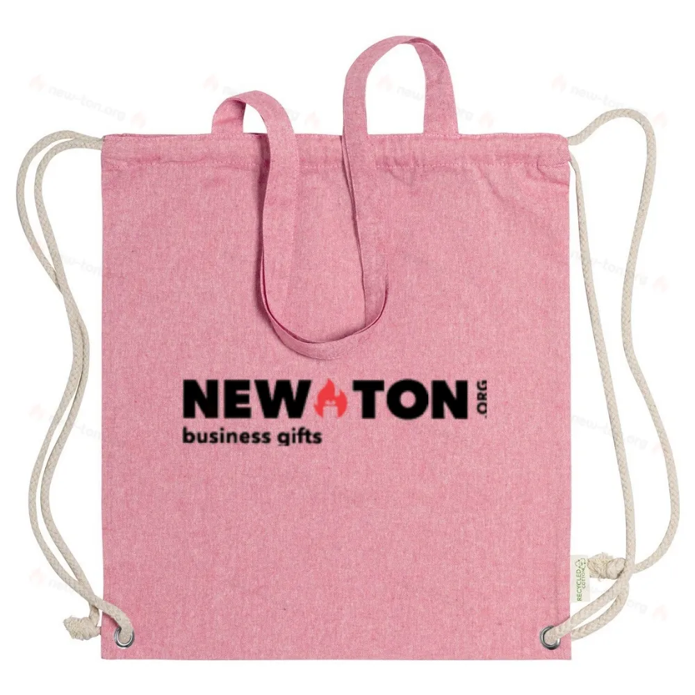 Сумка на завязках из переработанного хлопка с толстыми косичками и длинными ручками. Ее также можно использовать как сумку для покупок. 100% переработанный хлопок, 140 г/м².