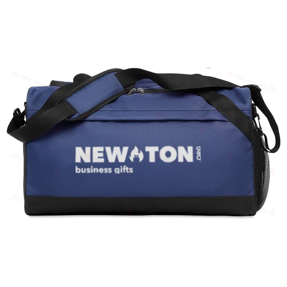 Спортивная или дорожная сумка из 600D RPET с большим фронтальным и внутренним карманом на молнии и регулируемым съемным плечевым ремнем.