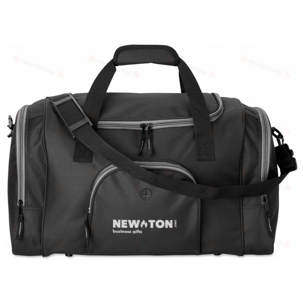 Сумка дорожная/спортивная из полиэстера 600D с 2 боковыми карманами, закрывающимися на молнию, и одним карманом для наушников. Съемный регулируемый наплечный ремень в комплекте.