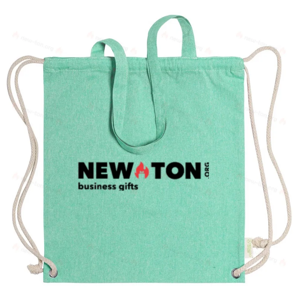 Сумка из переработанного хлопка на шнурке с толстыми плетеными шнурками и длинными ручками. Его также можно использовать как сумку для покупок. 100% переработанный хлопок плотностью 140 г / м².